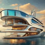 CONCEPT OF A FUTURISTIC BILLIONAIRES YACHT. BUILT OF STAINLESS STEEL , TINTED BULLETPROOF GLASS, HELICOPTER PORT ON ROOF, BUILT IN SWIMMING POOL.REAR...[+]