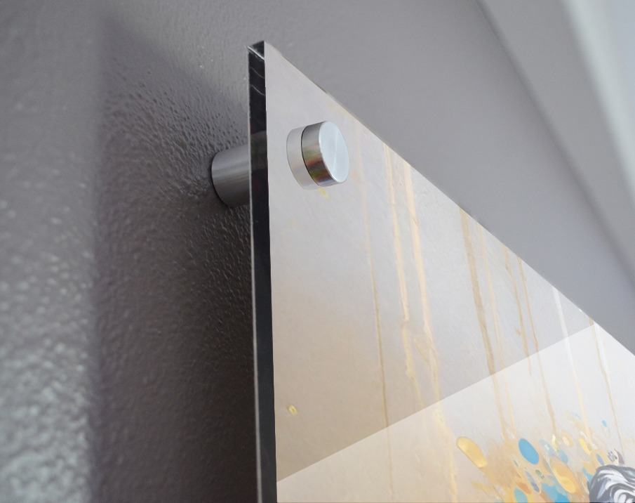 Printed to the edge - Ready to hang - provided with 4 premium polished aluminum stand off ( wall screws and mounting hardware provided )