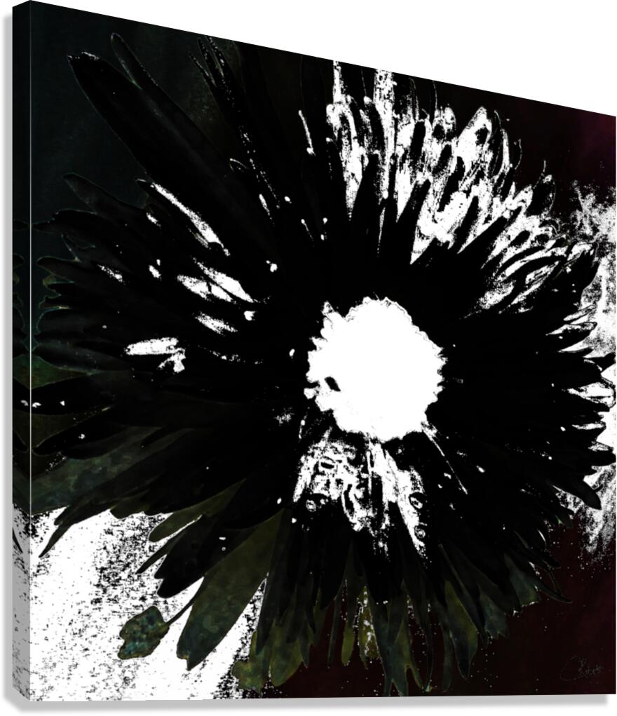 DARK DISTRESSED BLACK AND WHITE DAISY ON A DARK DISTRESSED BACKGROUND CATRIONA ROBERTS NATURE PHOTOGRAPHY AND DESIGNS  Canvas Print