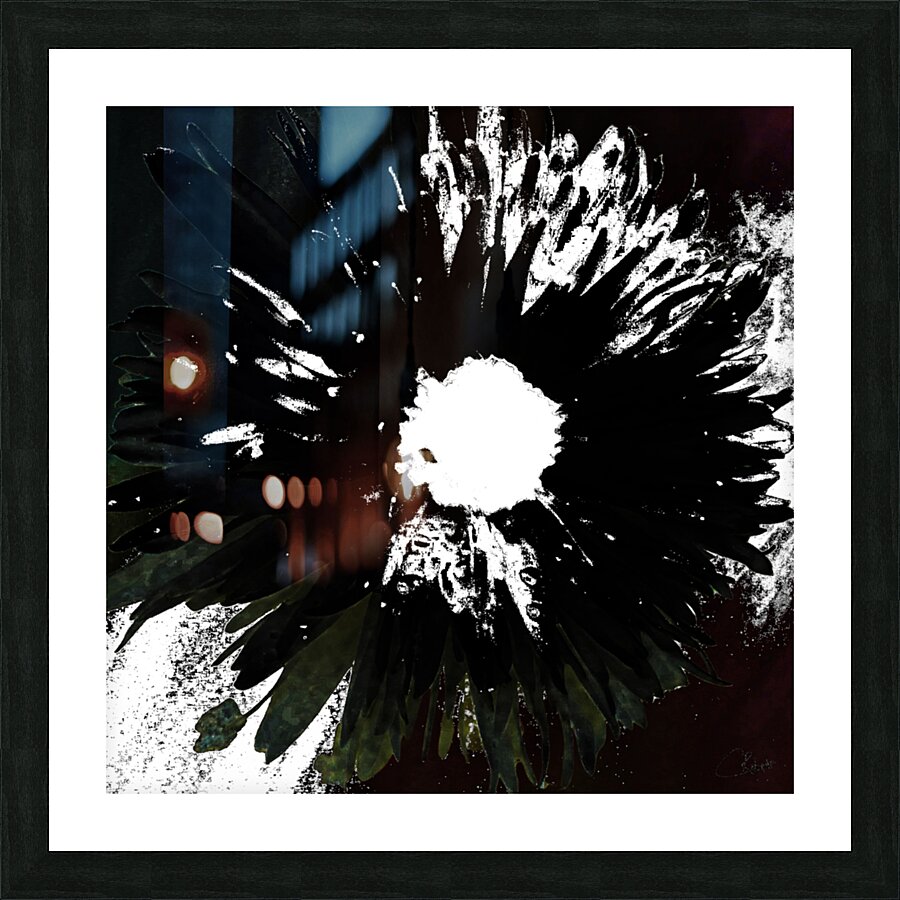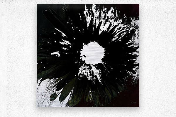 ABOUT THIS ARTWORK: DARK DISTRESSED BLACK AND WHITE DAISY ON A DARK DISTRESSED BACKGROUND