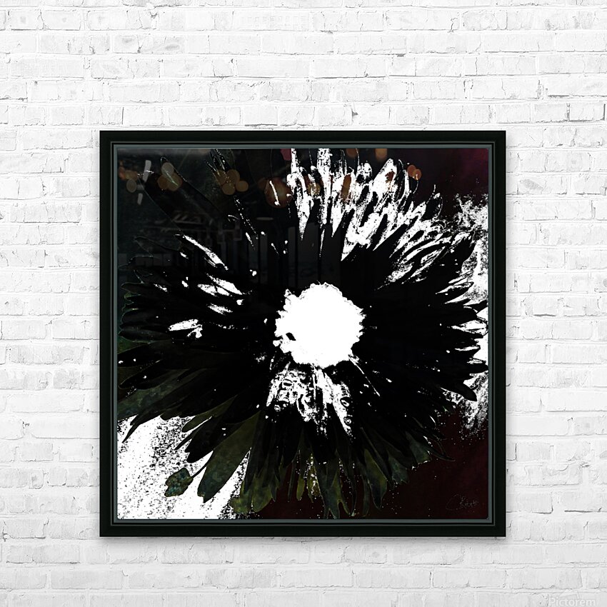 Dark Distressed Black and White Daisy on a Dark Distressed Background Wall Decor Frame