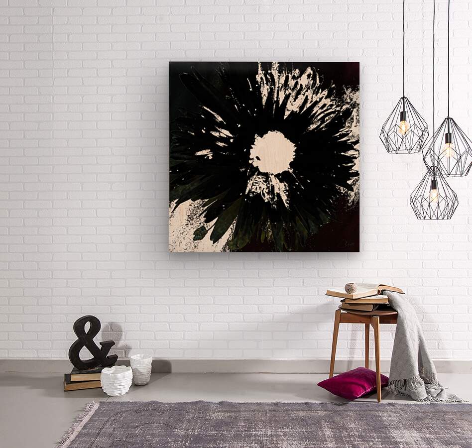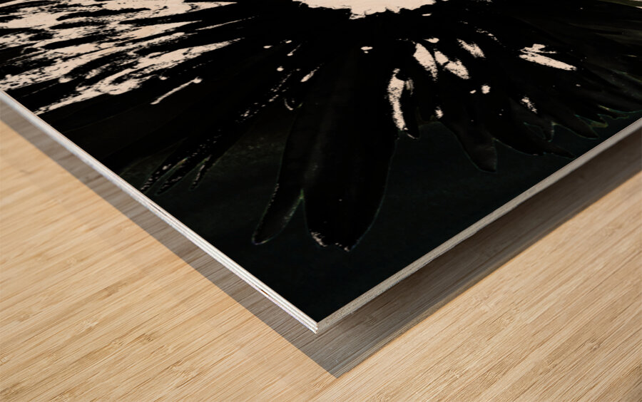 Dark Distressed Black and White Daisy on a Dark Distressed Background Wood print