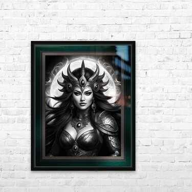 Get this artwork "Darikai Dalisai Mistress Of The Moon Captivating AI Concept Art Portrait by Xzendor7" in a framed print.