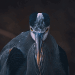 There’s unimpressed… and then there’s this. Staring dead-on with an icy gaze and a razor-straight bill, this Great Blue Heron delivers a look that says, “You’ve made poor choices.” The dark background adds to the intensity, drawing every bit of focus to its piercing yellow eyes and perfectly parted feathers. Whether it’s judging your life decisions or just your camera angle, this heron is not here to play. You’ve entered the beak zone—good luck surviving the verdict.
