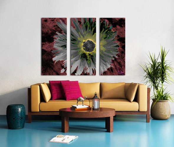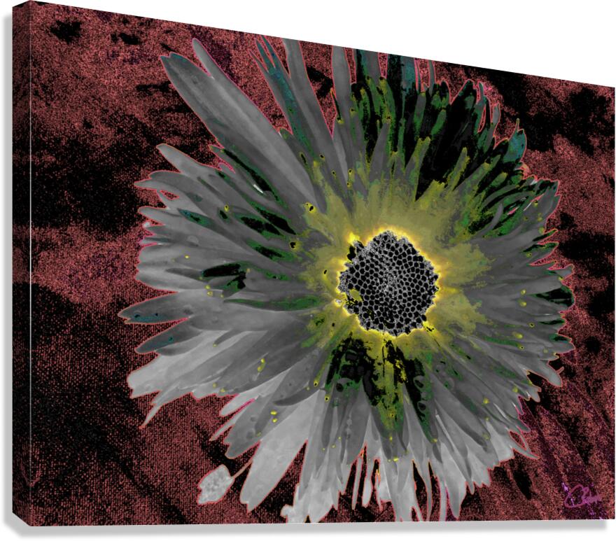 ABSTRACT SILVER AND GREEN DISTRESSED DAISY FLOWER ON A DARK ABSTRACT BACKGROUND CATRIONA ROBERTS NATURE PHOTOGRAPHY AND DESIGNS  Canvas Print