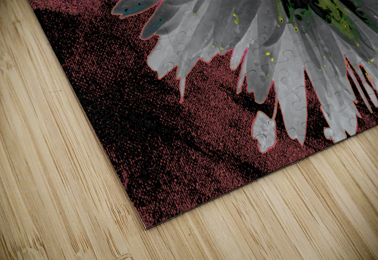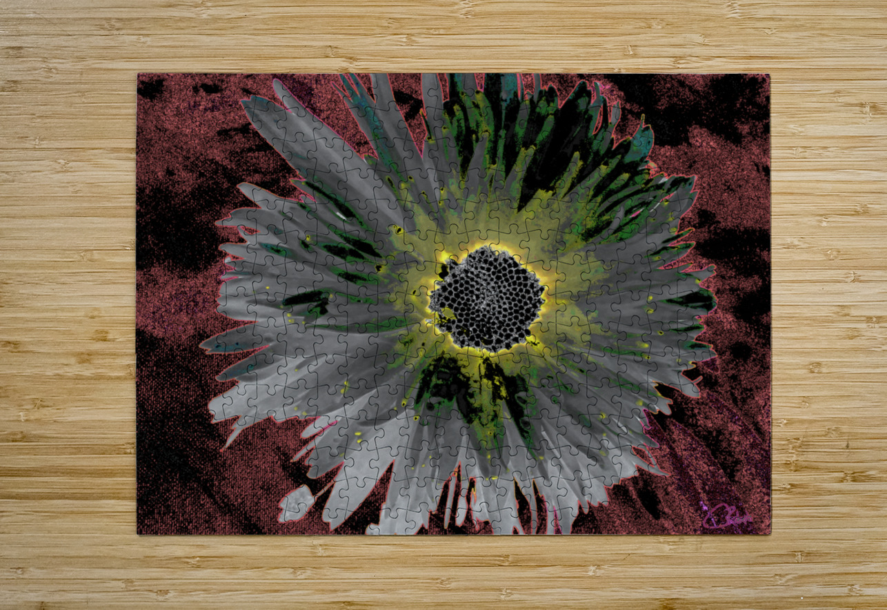 Abstract Silver and Green Distressed Daisy Flower on a Dark Abstract Background Catriona Roberts Nature Photography and Designs Puzzle printing