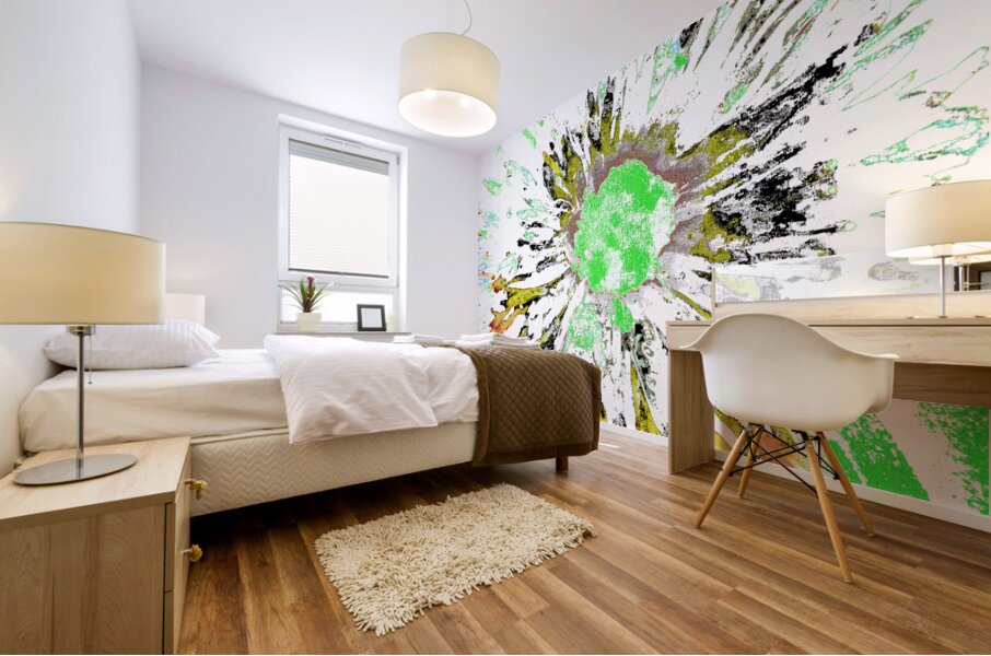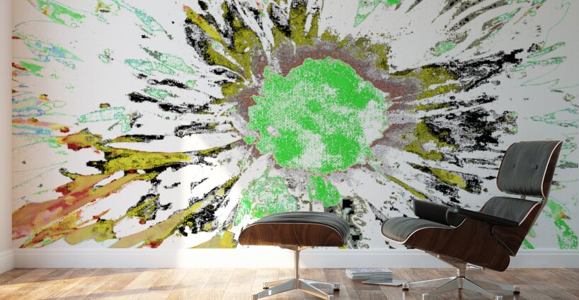 ABOUT THIS ARTWORK: ABSTRACT NEON GREEN COLOUR BLAST DAISY FLOWER ON AN ABSTRACT BACKGROUND