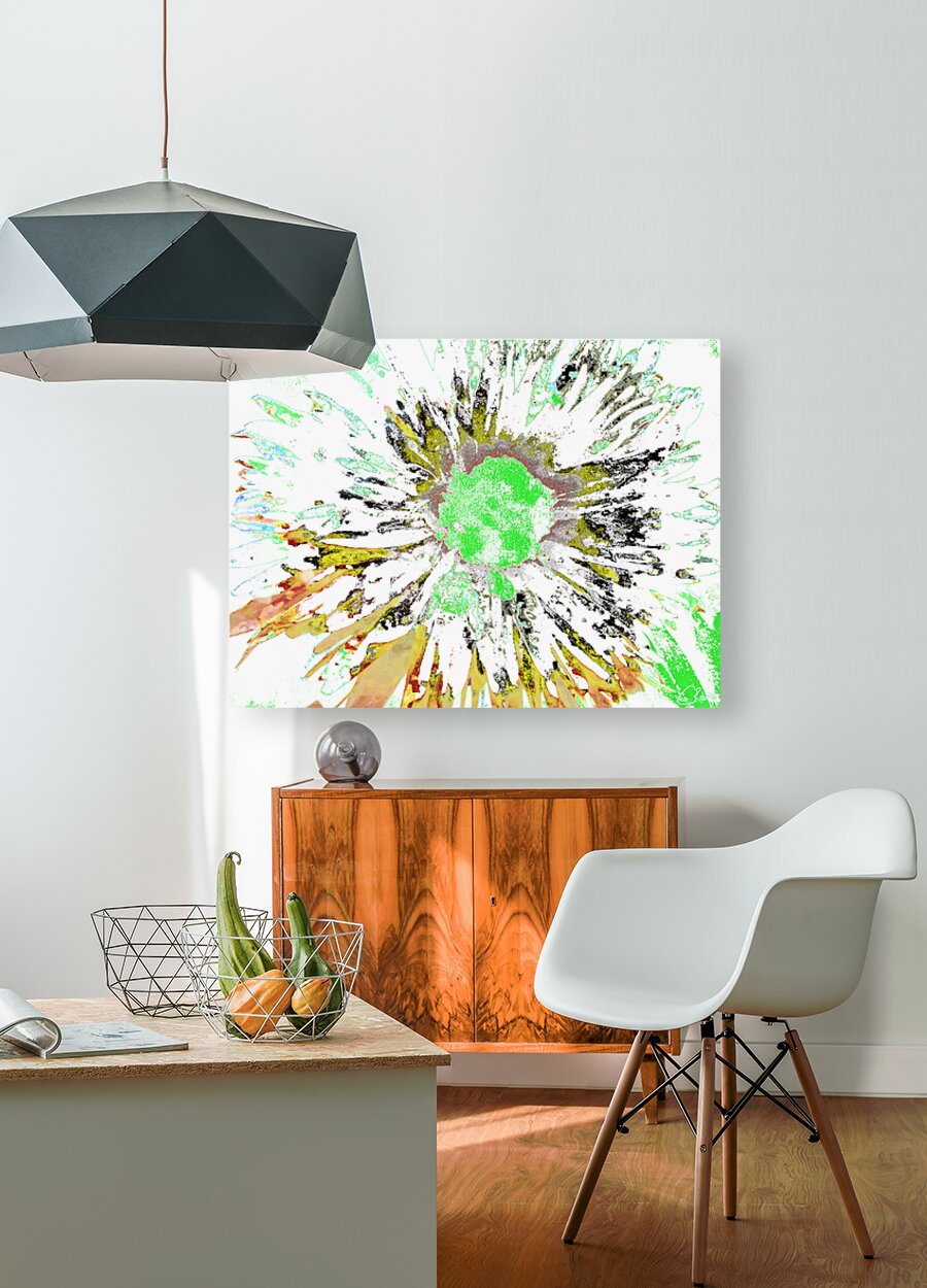Get this artwork "Abstract Neon Green Colour Blast Daisy Flower on an Abstract Background" in a framed print.