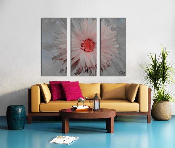 ABOUT THIS ARTWORK: PINK ABSTRACT DAISY FLOWER CENTRE ON A GREY ABSTRACT BACKGROUND