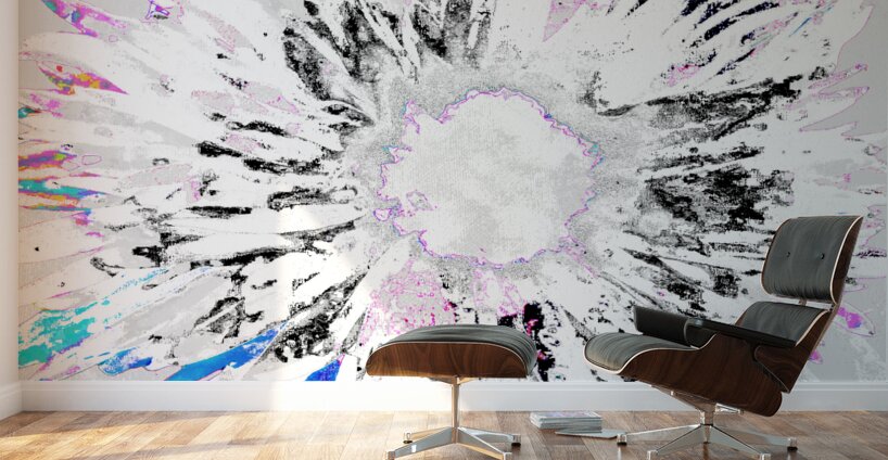 Two designs combined, a close up photo of a Daisy flower with an abstract acrylic, via digital manipulation using various modalities (including the Ma...[+]