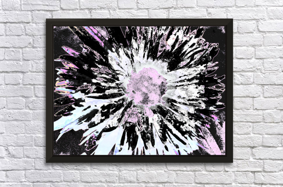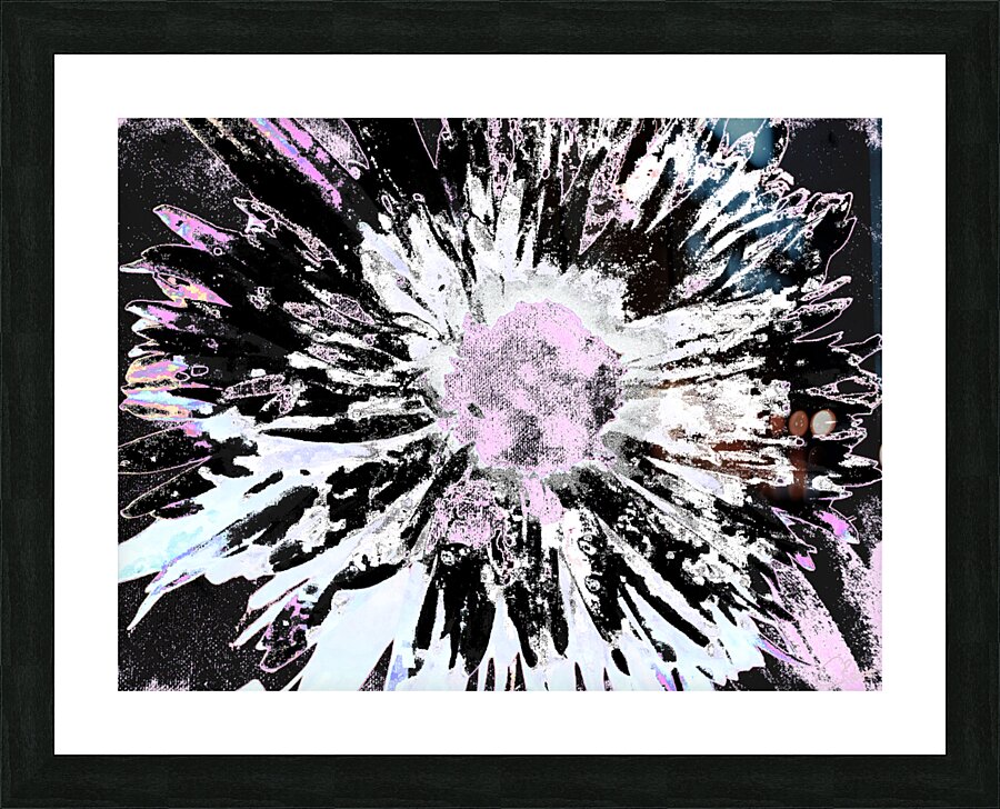 Get this artwork "White Neon Pink and Violet Daisy on an Abstract Background Version 10" in a framed print.