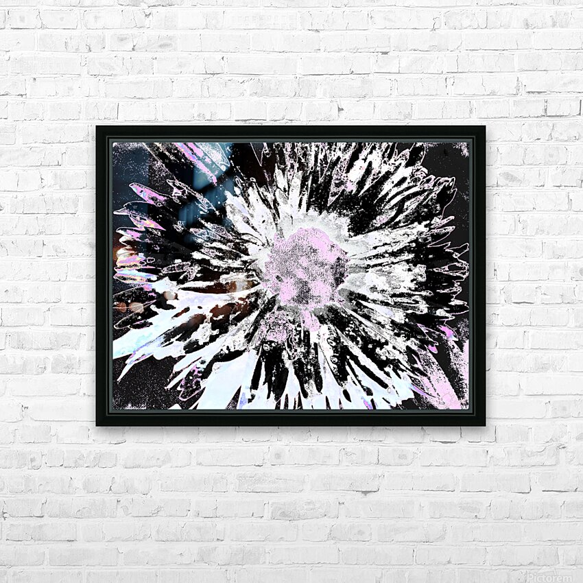 White Neon Pink and Violet Daisy on an Abstract Background Version 10 Wall Decor Frame