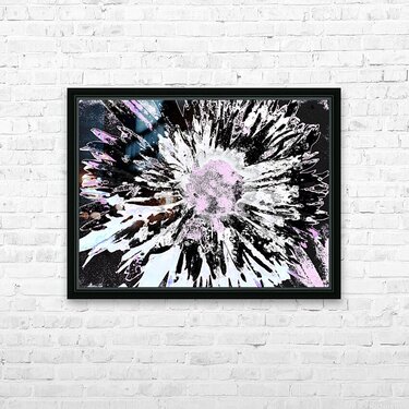 White neon pink and violet daisy on an abstract Version 10 Originally a hand painted acrylic and a close up photo of a Daisy flower, laterally combine...[+]