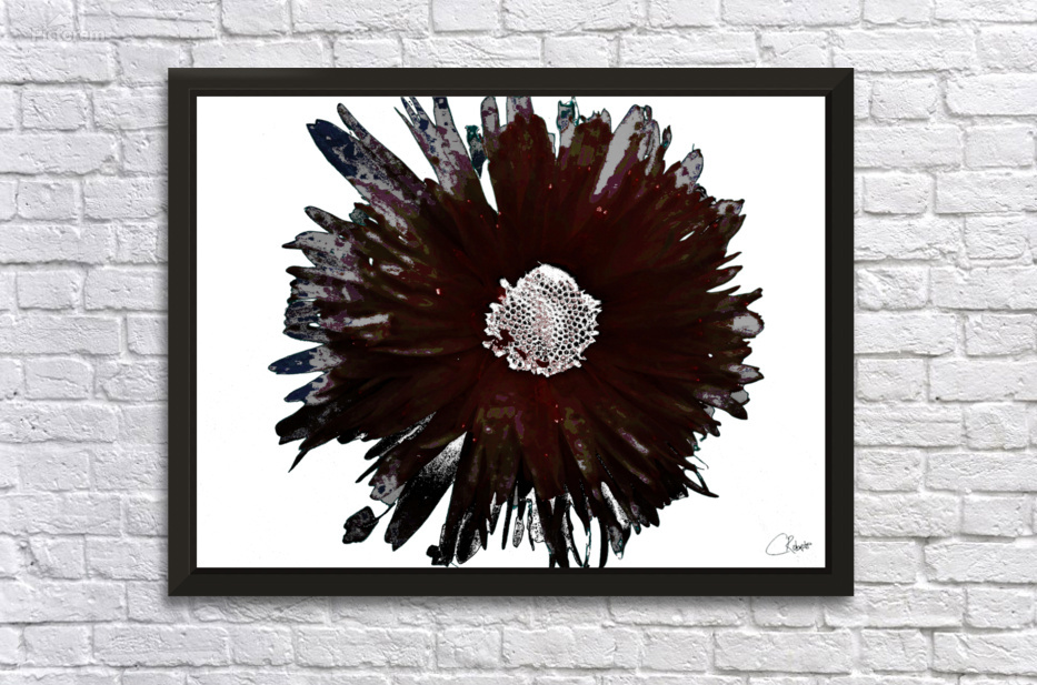 Dark Burgundy Distressed Daisy on  a Pale Abstract Background Picture Frame Printing