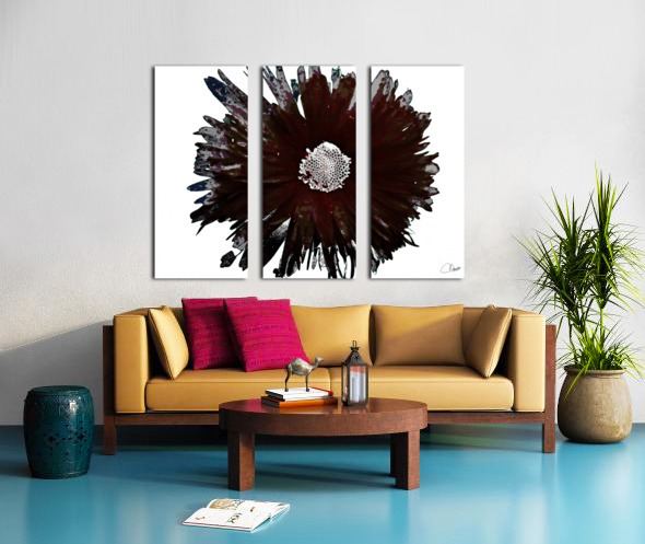DARK BURGUNDY DISTRESSED DAISY ON  A PALE ABSTRACT BACKGROUND CATRIONA ROBERTS NATURE PHOTOGRAPHY AND DESIGNS  Canvas Print
