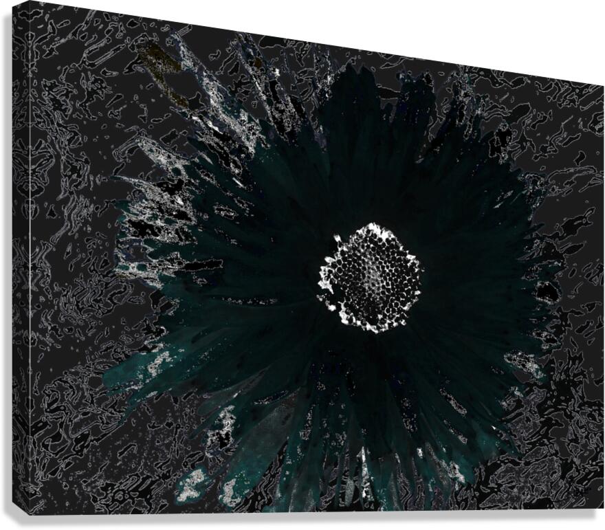 DISTRESSED DARK DAISY WITH DARK CENTRE ON DARK ABSTRACT BACKGROUND CATRIONA ROBERTS NATURE PHOTOGRAPHY AND DESIGNS  Canvas Print