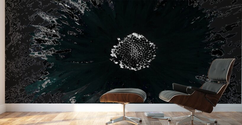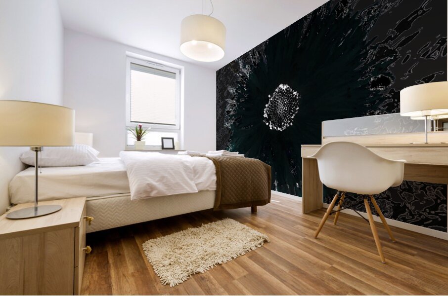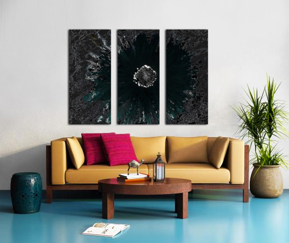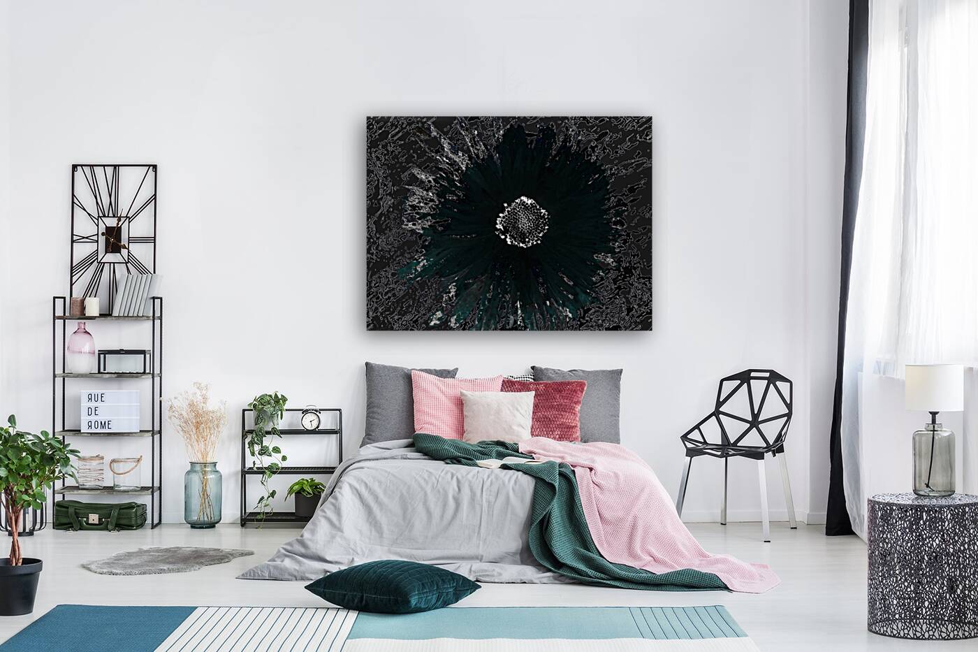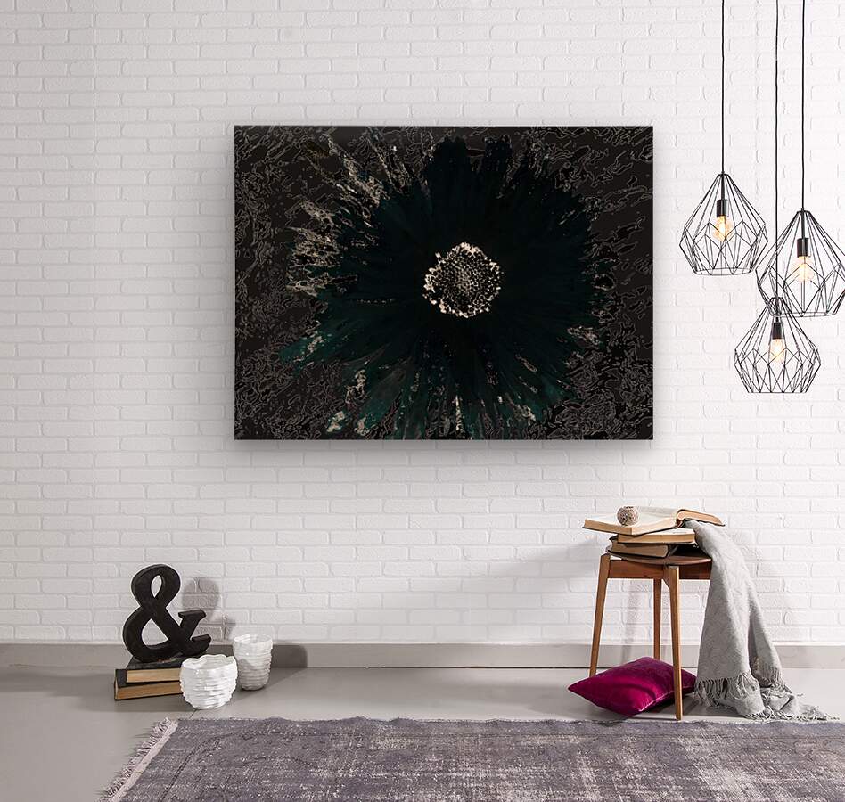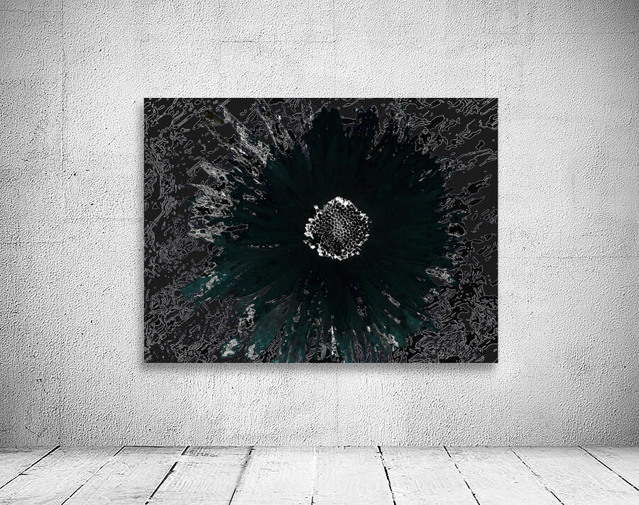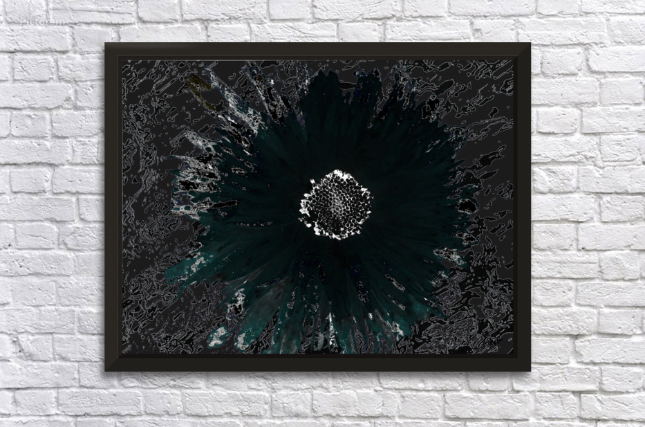 Distressed Dark Daisy with Dark Centre on Dark Abstract Background Wall Decor Frame