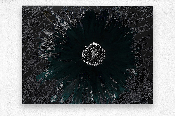 ABOUT THIS ARTWORK: DISTRESSED DARK DAISY WITH DARK CENTRE ON DARK ABSTRACT BACKGROUND