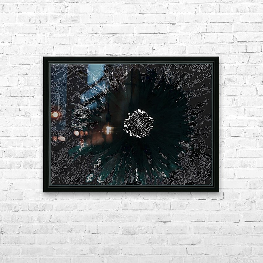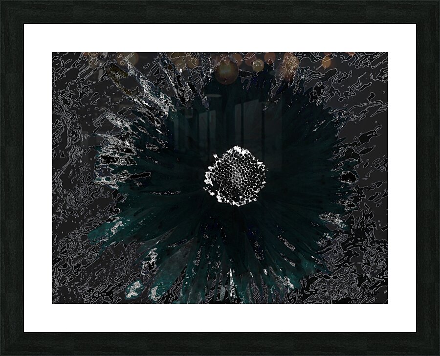 Distressed Dark Daisy with Dark Centre on Dark Abstract Background Picture Frame Printing