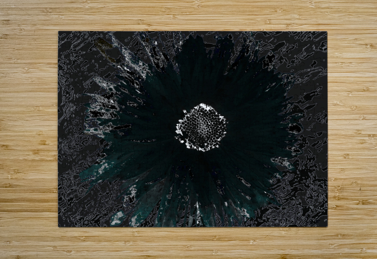 Distressed Dark Daisy with Dark Centre on Dark Abstract Background Catriona Roberts Nature Photography and Designs Puzzle
