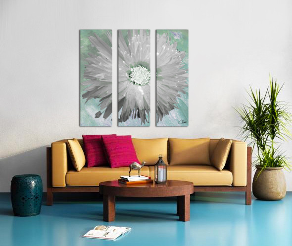 Paler Silver Turquoise Daisy on a Green Abstract Background Frame print