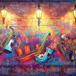 Get this artwork "Graffiti Mural Making Music" in a framed print.