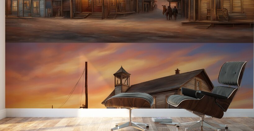IMPRESSIONIST PAINTING OF TWO WESTERN TOWN SCENES .