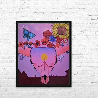 ABOUT THIS ARTWORK: ABSTRACT PINK DESERT SKULL