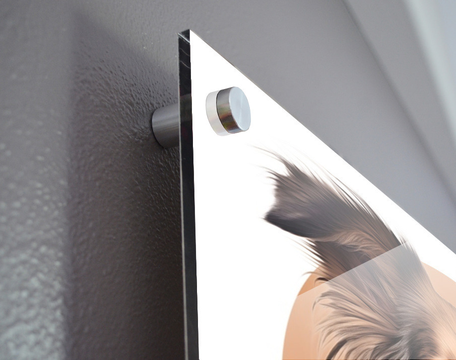 Printed to the edge - Ready to hang - provided with 4 premium polished aluminum stand off ( wall screws and mounting hardware provided )