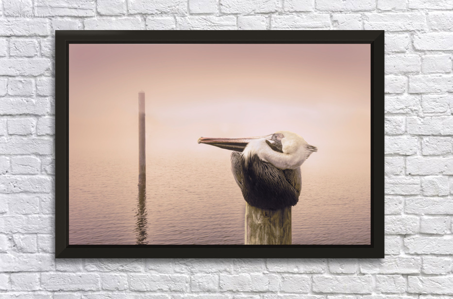 Get this artwork "Pensacola Florida Pelican in Fog" in a framed print.