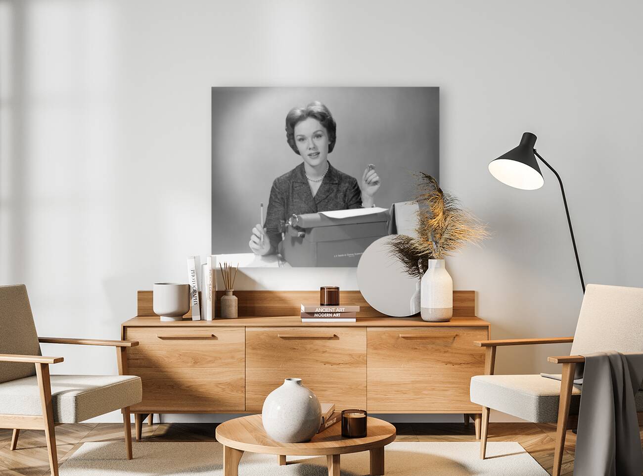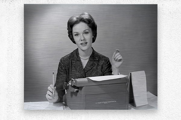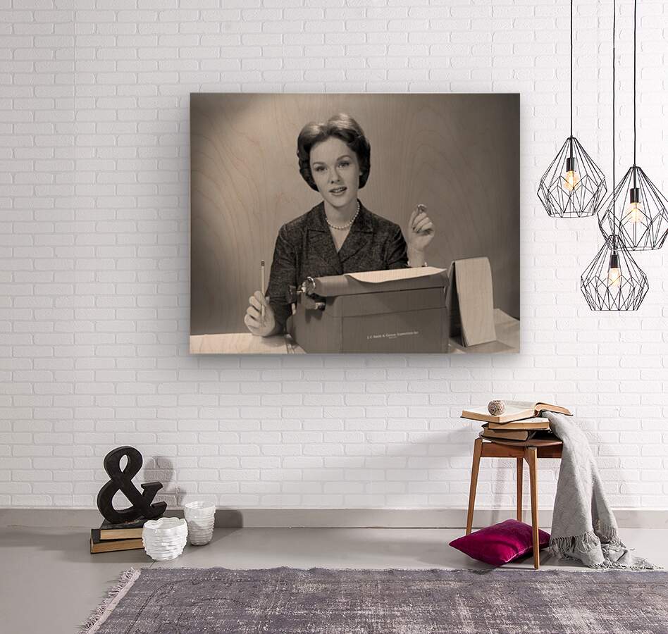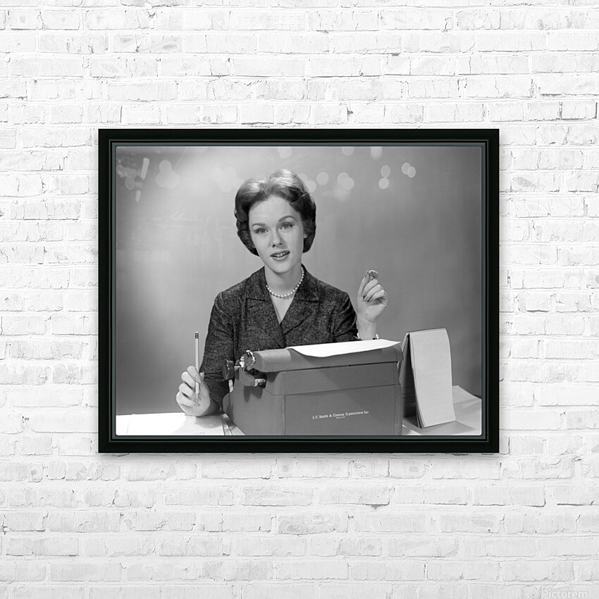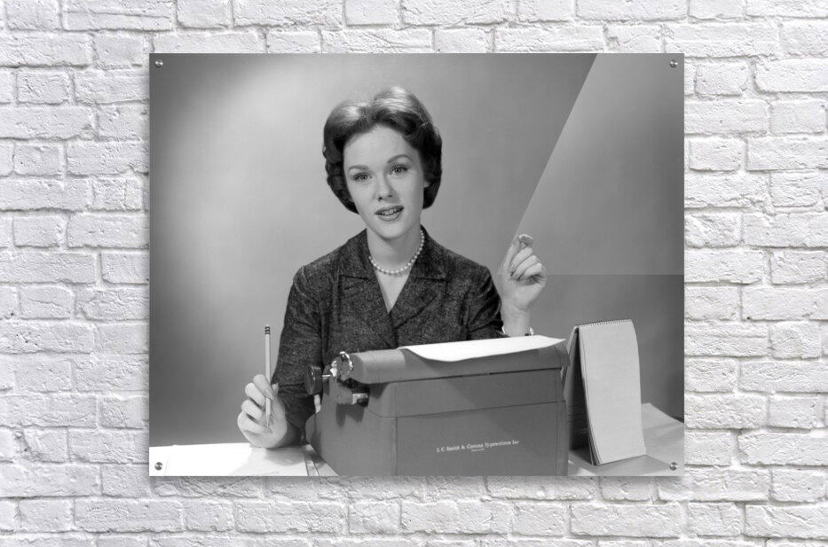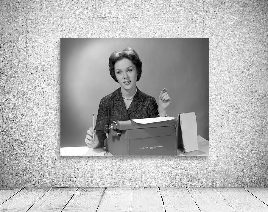 1960s SECRETARY SEATED BEHIND TYPEWRITER WITH PAD 195037 Wall Decor Frame