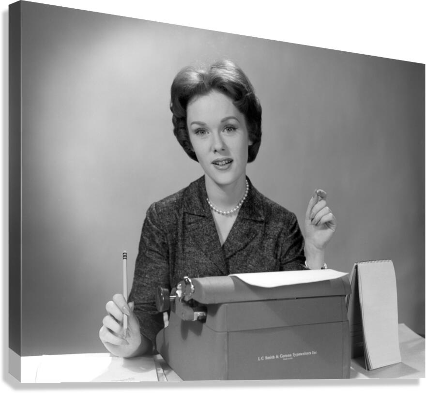 1960s SECRETARY SEATED BEHIND TYPEWRITER WITH PAD 195037 Canvas print