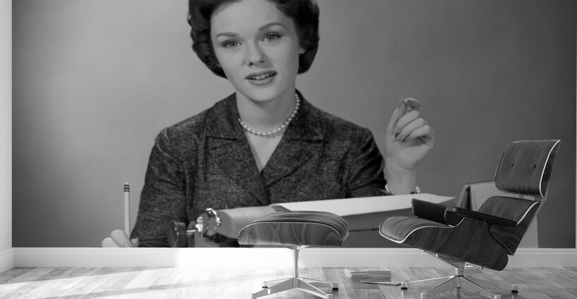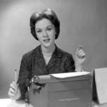 ABOUT THIS ARTWORK: 1960S SECRETARY SEATED BEHIND TYPEWRITER WITH PAD 195037