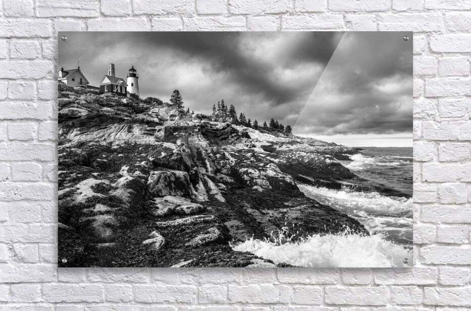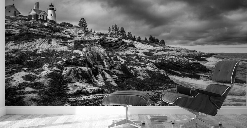 Get this artwork "Rocky Shoreline by Pemaquid Lighthouse at Low Tide in Maine - B&W" in a framed print.