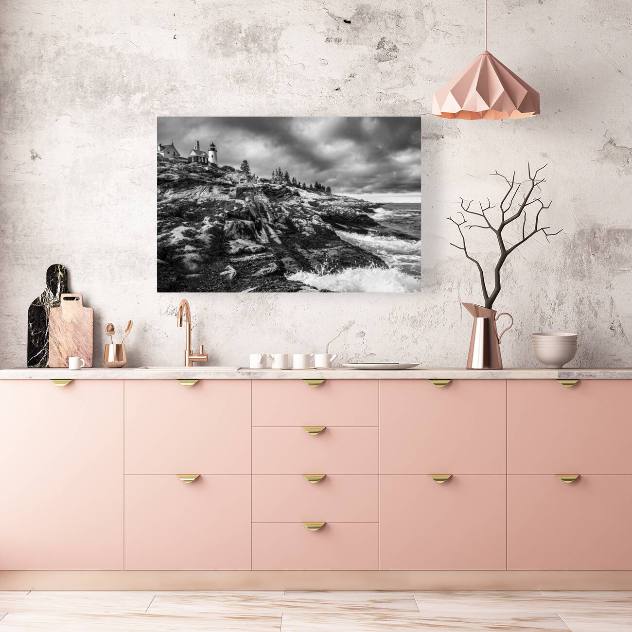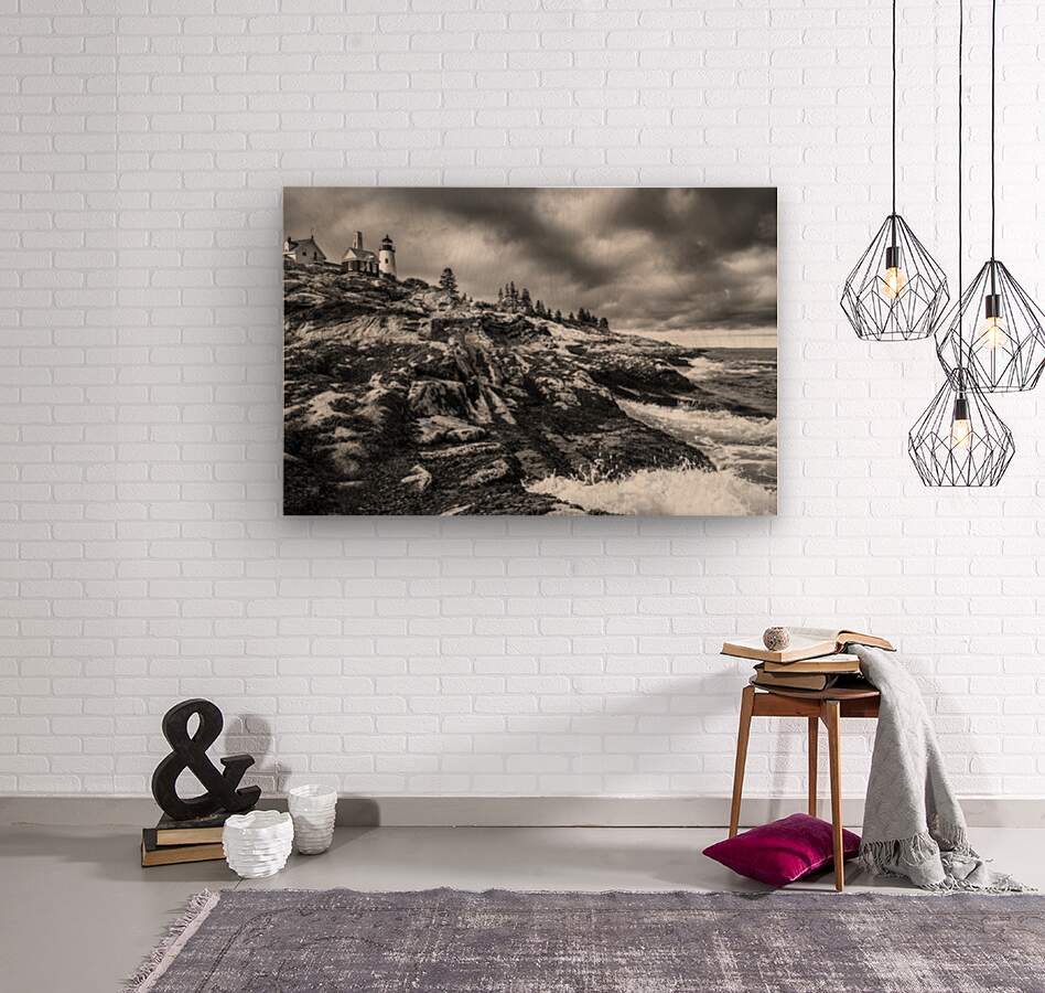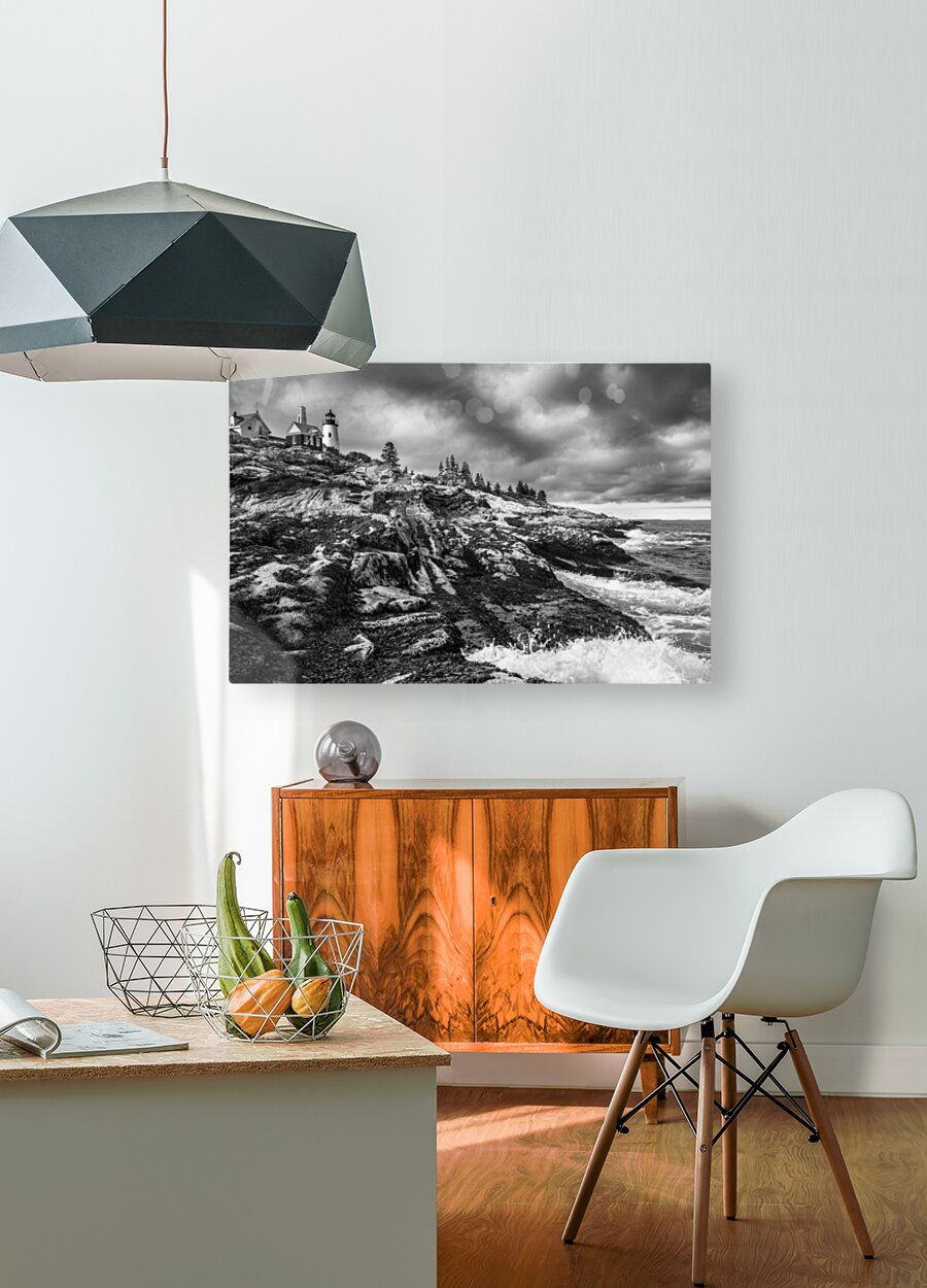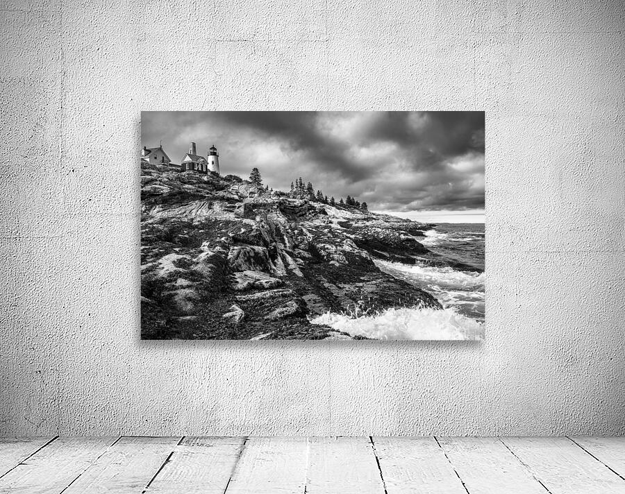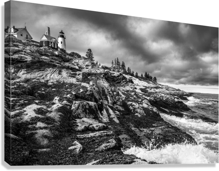 ROCKY SHORELINE BY PEMAQUID LIGHTHOUSE AT LOW TIDE IN MAINE - B&W ALLAN WOOD  Canvas Print