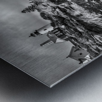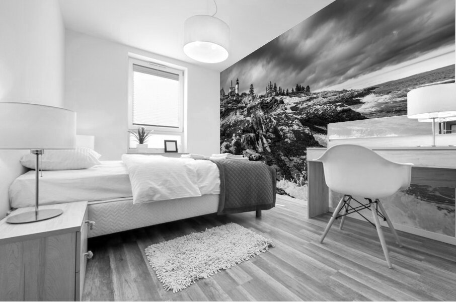 ABOUT THIS ARTWORK: ROCKY SHORELINE BY PEMAQUID LIGHTHOUSE AT LOW TIDE IN MAINE - B&W