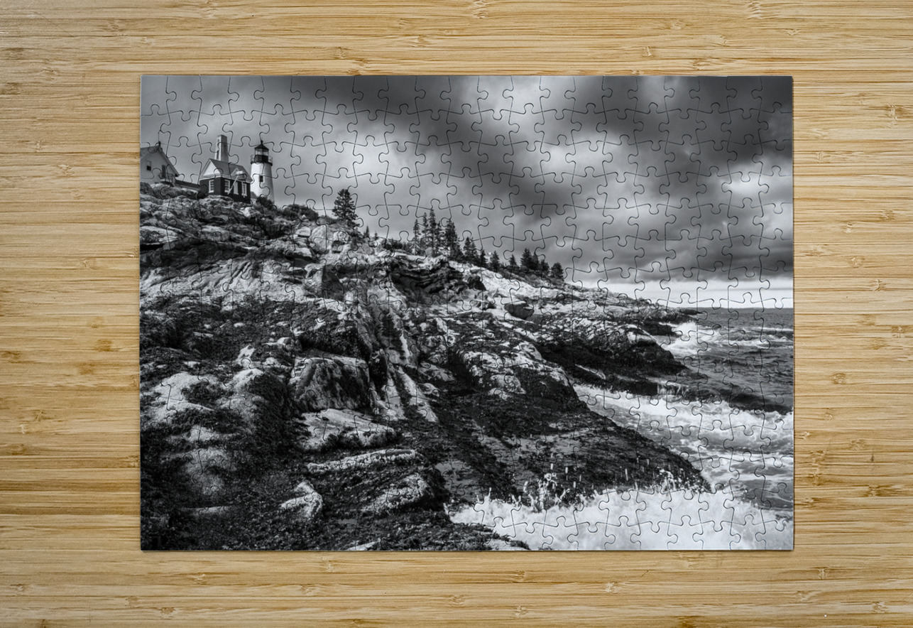 Rocky Shoreline by Pemaquid Lighthouse at Low Tide in Maine - B&W Allan Wood Puzzle printing
