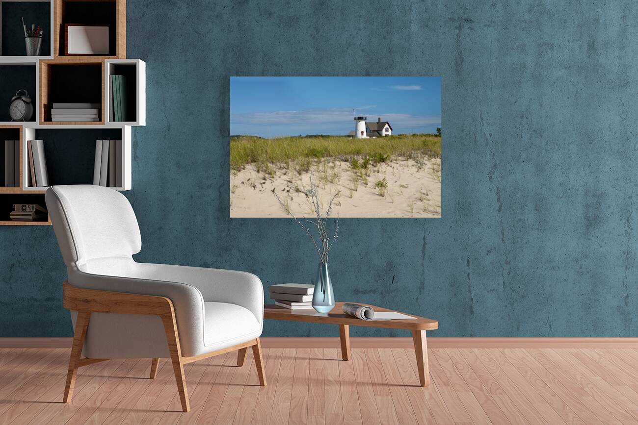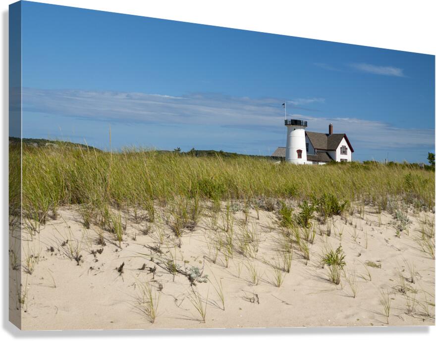 STAGE HARBOR LIGHTHOUSE ON BEACH SAND ON CAPE COD IN MASSACHUSETTS ALLAN WOOD  Canvas Print