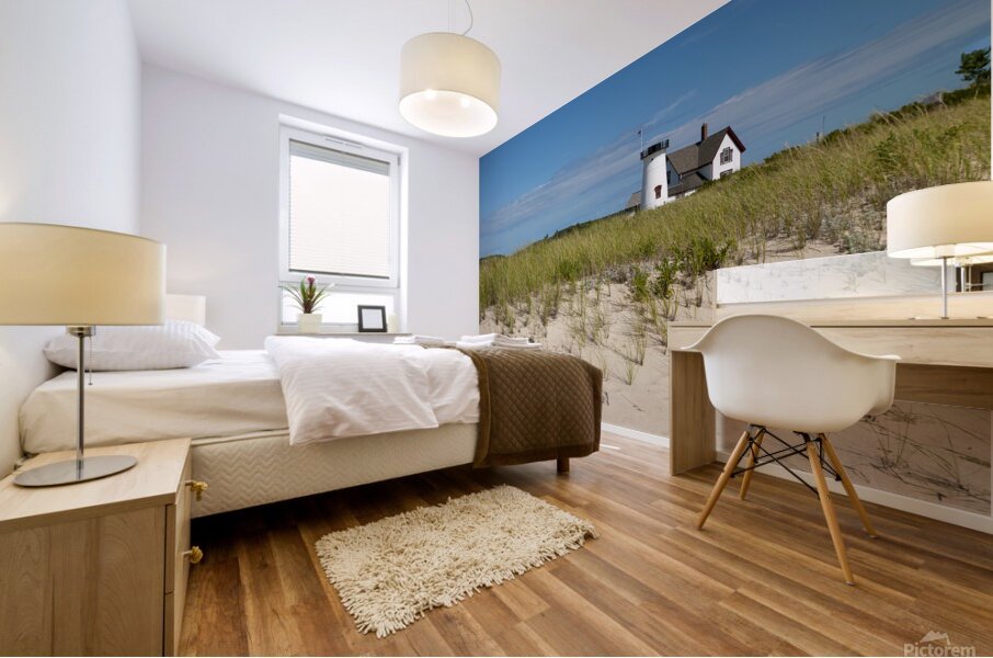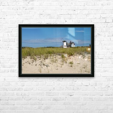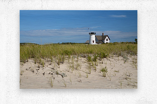 ABOUT THIS ARTWORK: STAGE HARBOR LIGHTHOUSE ON BEACH SAND ON CAPE COD IN MASSACHUSETTS