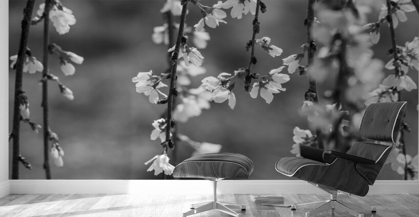 ABOUT THIS ARTWORK: WEEPING CHERRY BLOOMS AND BRANCHES GRAYSCALE