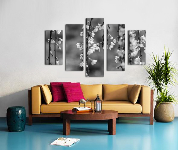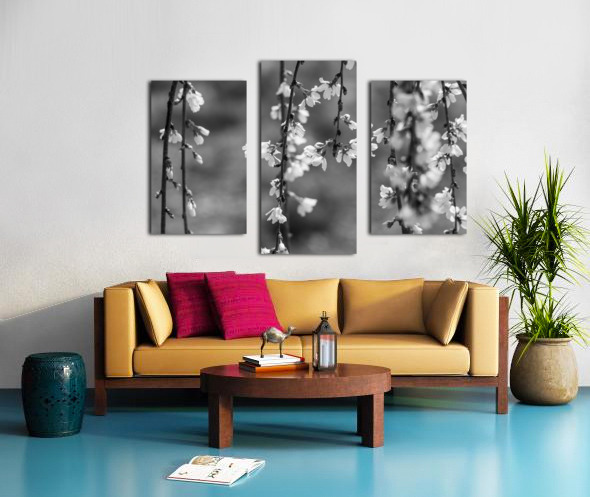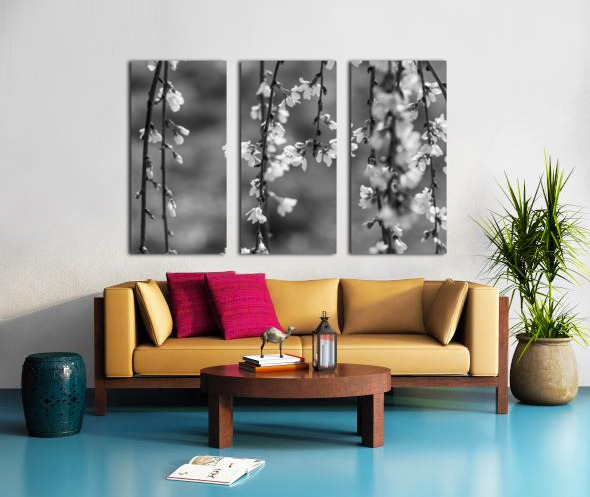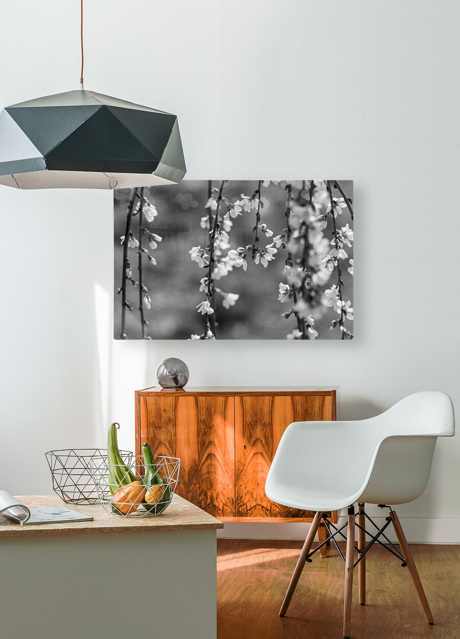 Weeping Cherry Blooms And Branches Grayscale Canvas print