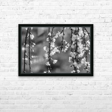 Get this artwork "Weeping Cherry Blooms And Branches Grayscale" in a framed print.