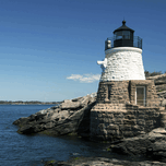CASTLE HILL LIGHTHOUSE ON NARRAGANSETT BAY IN RHODE ISLAND