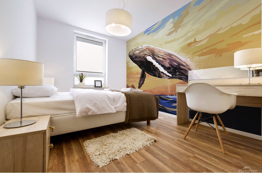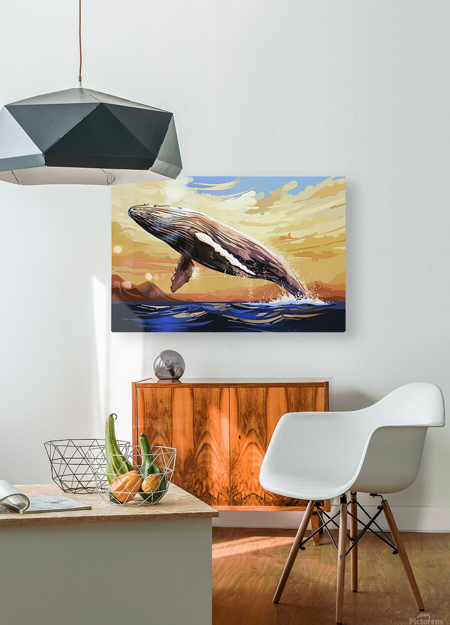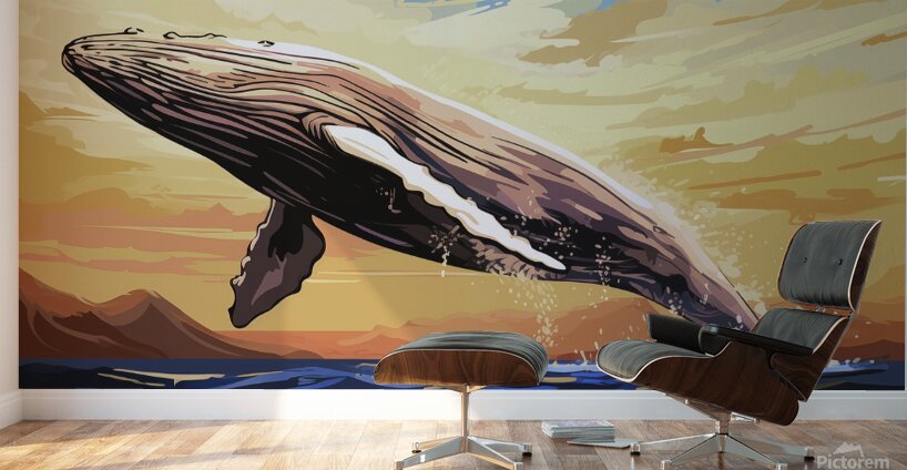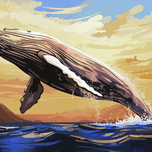 Stylized illustration of a humpback whale off the coast of Baja California in winger at sunset. Produced specifically by DeepEarth Photography for use in the hospitality industry. No warranties are stated or implied. Credits: DeepEarth Photography