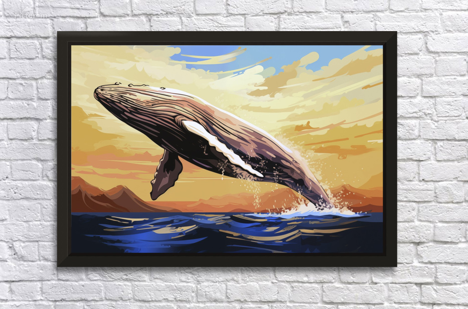 Stylized illustration of a humpback whale off the coast of Baja California in winger at sunset. Produced specifically by DeepEarth Photography for use in the hospitality industry. No warranties are stated or implied. Credits: DeepEarth Photography