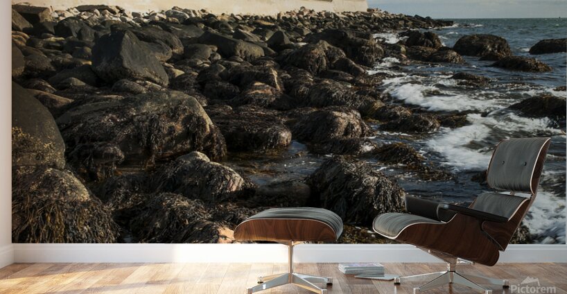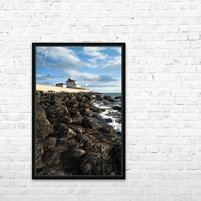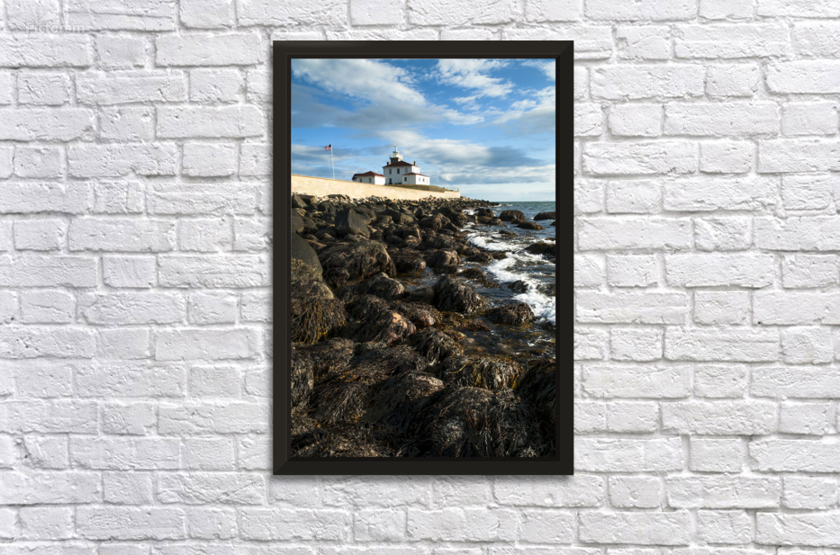 Seaweed Covered Rocky Shore at Watch Hill Light At Low Tide in Rhode Island Wall Decor Frame