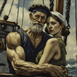 A I GENERATOR HAS LOCATED POPEYE THE SAILOR MAN. MUCH OLDER NOW AS THE GRAY SHOWS, HOWEVER HE HAS FOUND HIMSELF A YOUNGER OLIVE OIL TO KEEP HIM WARM O...[+]