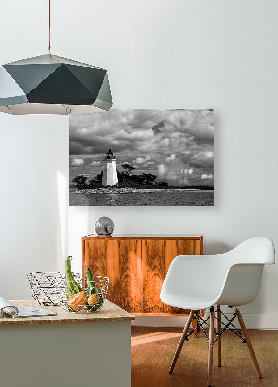 Get this artwork "Sunlit Black Rock Harbor Lighthouse in Bridgeport Connecticut -B&W" in a framed print.