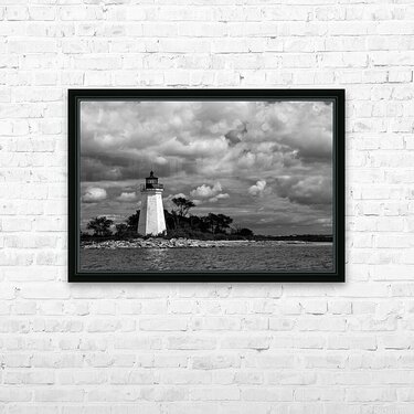 Sunlit Black Rock Harbor Lighthouse in Bridgeport Connecticut -B&W Picture Frame Printing