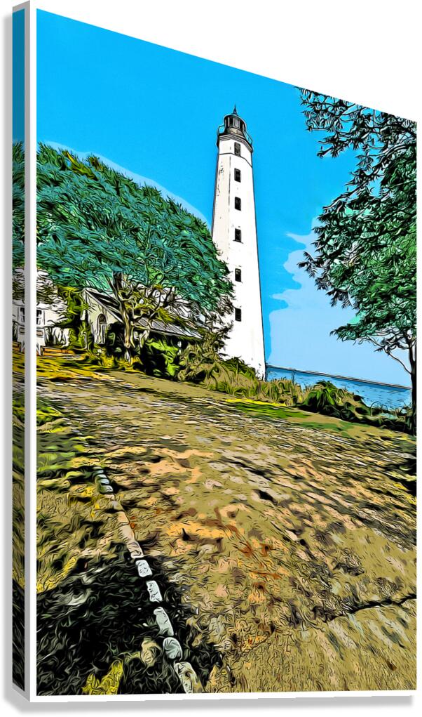 RUSTIC LONDON HARBOR LIGHTHOUSE TOWER IN CONNECTICUT - ILLUS. ALLAN WOOD  Canvas Print